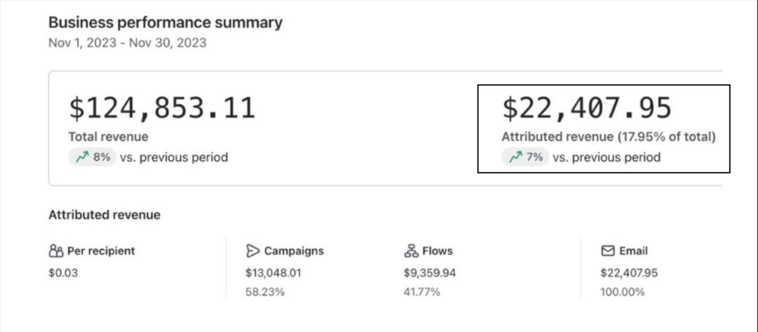 Before breaking down the system itself, it’s important to understand what becomes possible once your email backend is actually built the right way.The examples below aren’t cherry-picked or theoretical. They illustrate what ecommerce brands can achieve when email is structured correctly.These aren’t my results: I’m using them to illustrate what ecommerce brands can achieve with a strong email system.